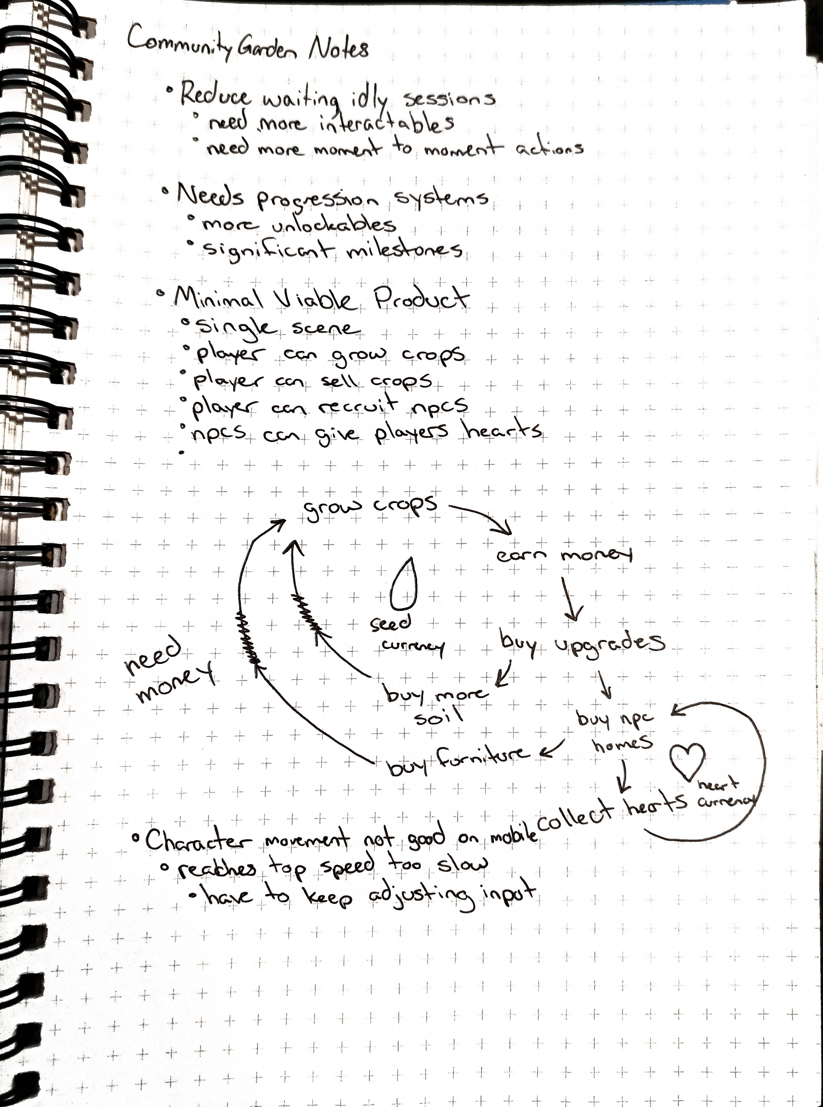 A hand-drawn 2D mobile life sim game that progresses much like Animal Crossing. Players can plant and cultivate a wide range of garden vegetables and turn them into citizens of their garden. By taking better care of the garden inhabitants, players can unlock house customization options to better express the personalities of their new friends.Role: Lead Designer and Developer